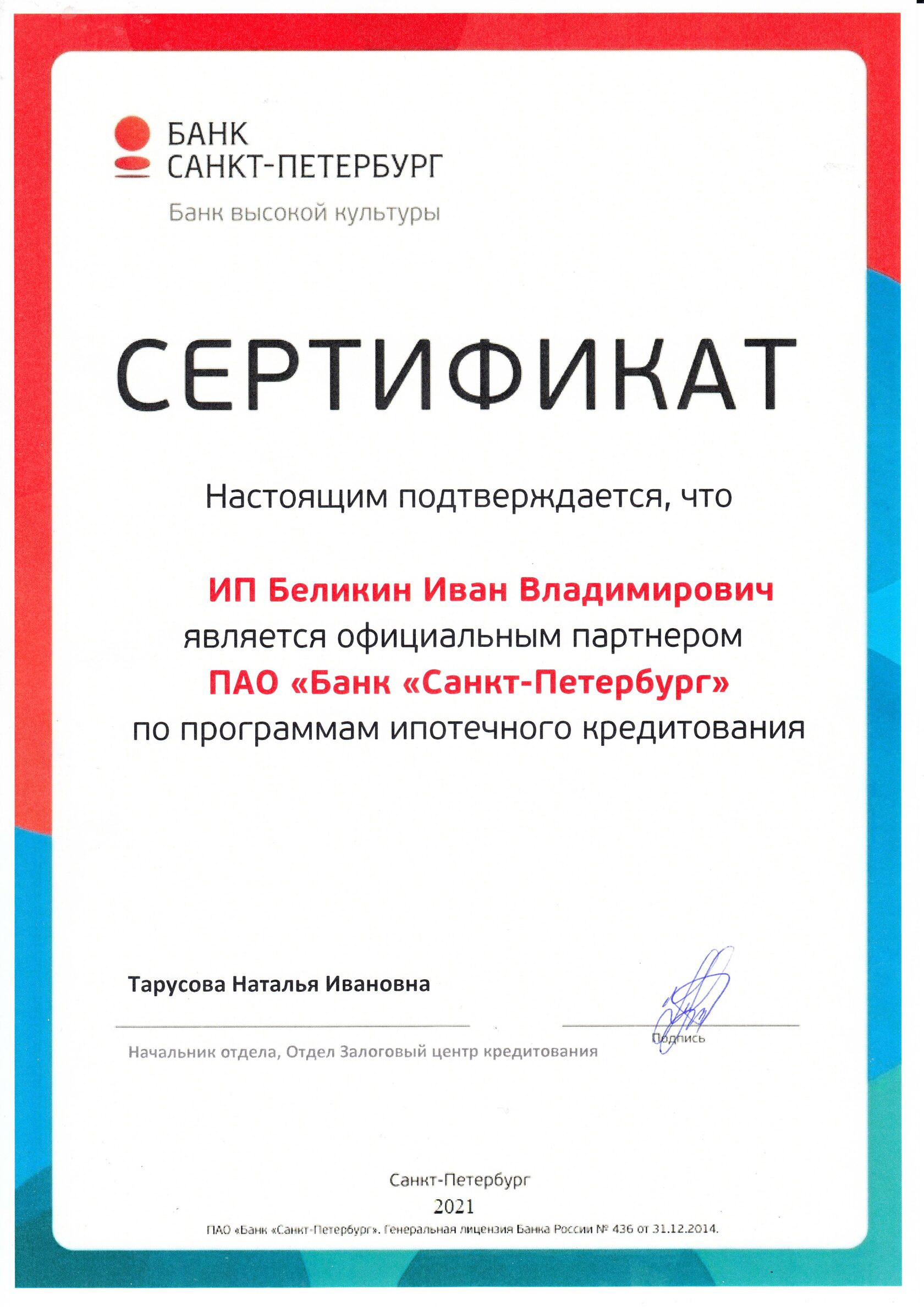 Сертификаты партнерской программы Агентства недвижимости BELIKAN